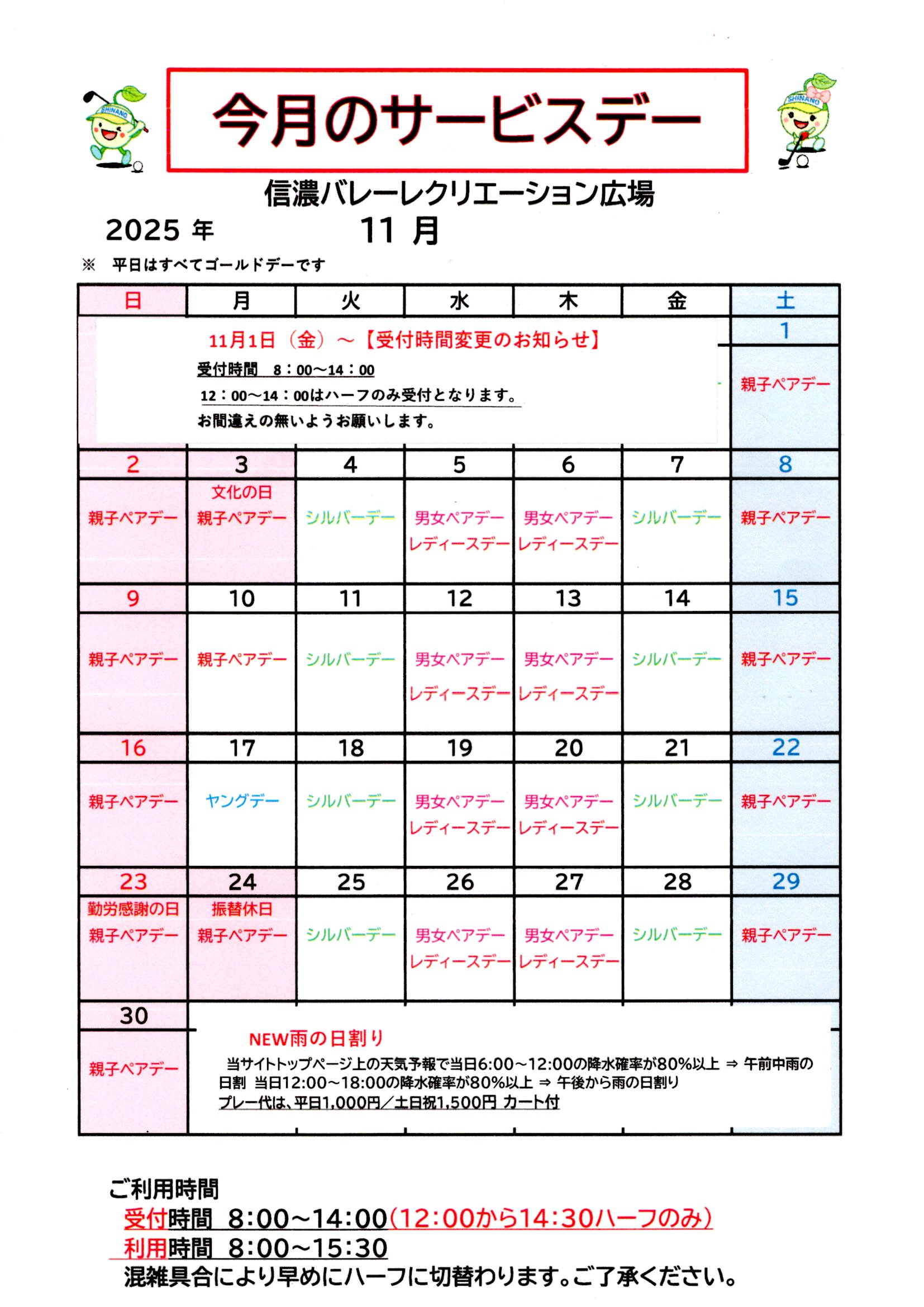 月 月間スケジュール・イベント情報